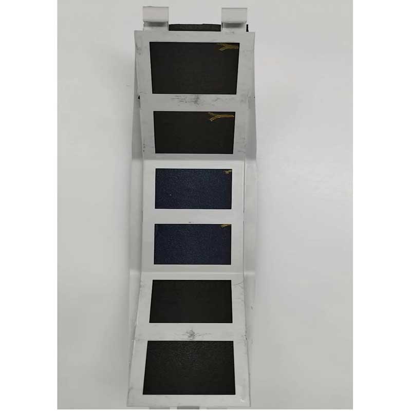 まず試験片內(nèi)の全ての色が照射領(lǐng)域に含まれるようにカットし、試験片とブルースケールを試験片ホルダーに取り付け、耐光性試験機(jī)に固定します。目的のブルースケールの3級(jí)又は4級(jí)が標(biāo)準(zhǔn)退色(変退色用グレースケール 4號(hào)と同程度の色差)するまで露光し、標(biāo)準(zhǔn)退色したブルースケールと比較し、評(píng)価します。