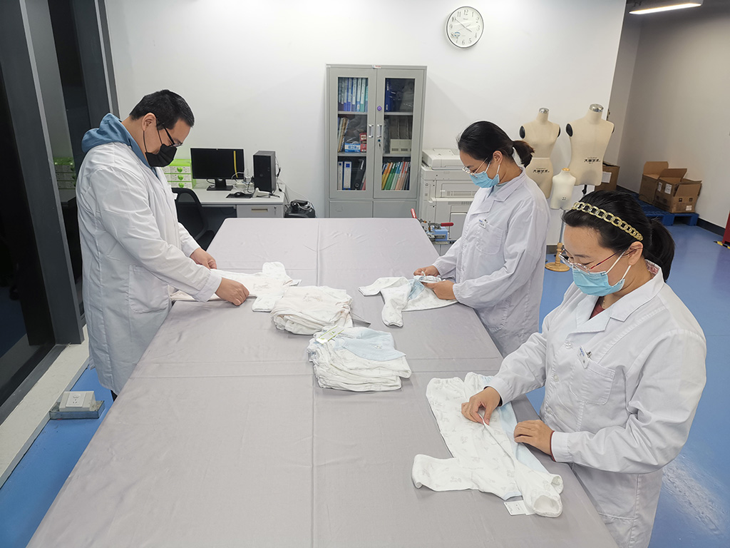 製品の抜取検査は生産ロットに対して抜取枚數(shù)を決定し検査します。表示、寸法、外観、縫製を確認(rèn)します。抜取枚數(shù)はJIS Z 9015-2に基づいて実施しています。